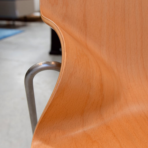 Having designed products for Knoll, Cassina, Renz, Thonet and Acerbis, chances are you’ve laid eyes on a Jehs & Laub chair, lounger or sofa. Now the German design duo and partners bring their contemporary perspective to the nature-inspired Ginkgo Chair Series for Davis Furniture. The Ginkgo Chairs are made of durable bent plywood and are stylishly formed to resemble their namesake leaf. The seat and back are made of a singular, shaped piece of plywood with upwardly curved edges to form around the body. Because of its unique shape and flexible material, Ginkgo’s shell is surprisingly comfortable and relaxing. The Ginkgo Series is more than just functional. Its slender profile and oak finishe which has been custom tinted offer universal aesthetics for modern or more traditional environments. The chairs we have on offer have metal legs. Ginkgo Chair Series. Designed by Jehs & Laub. Manufactued by Davis Furniture sold through Anibou