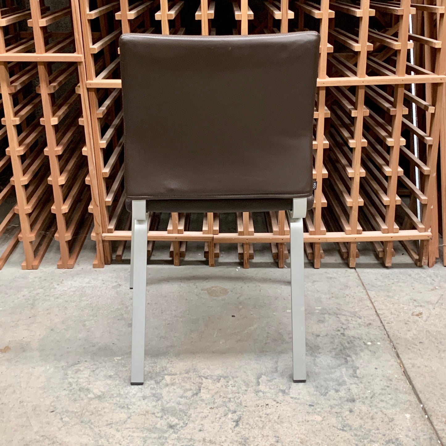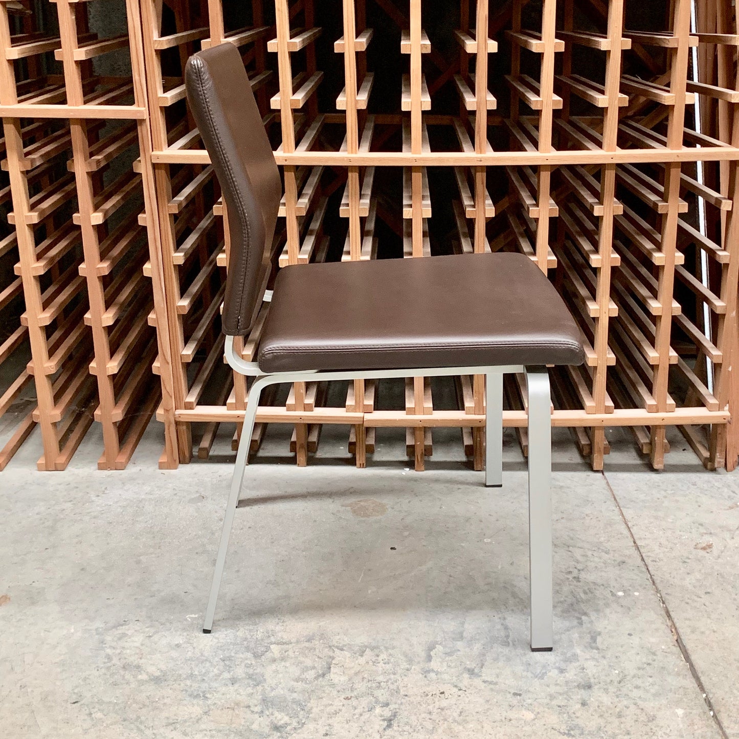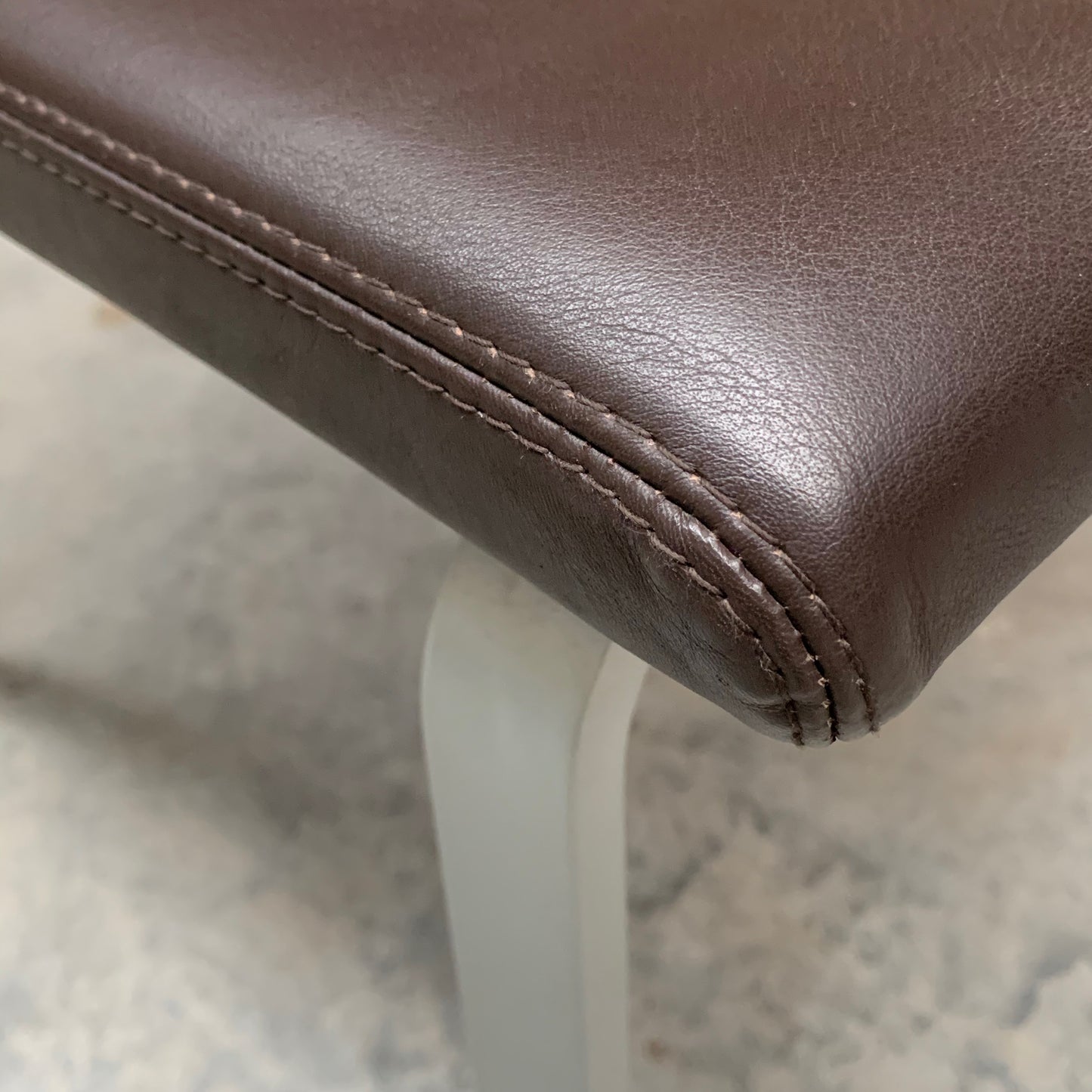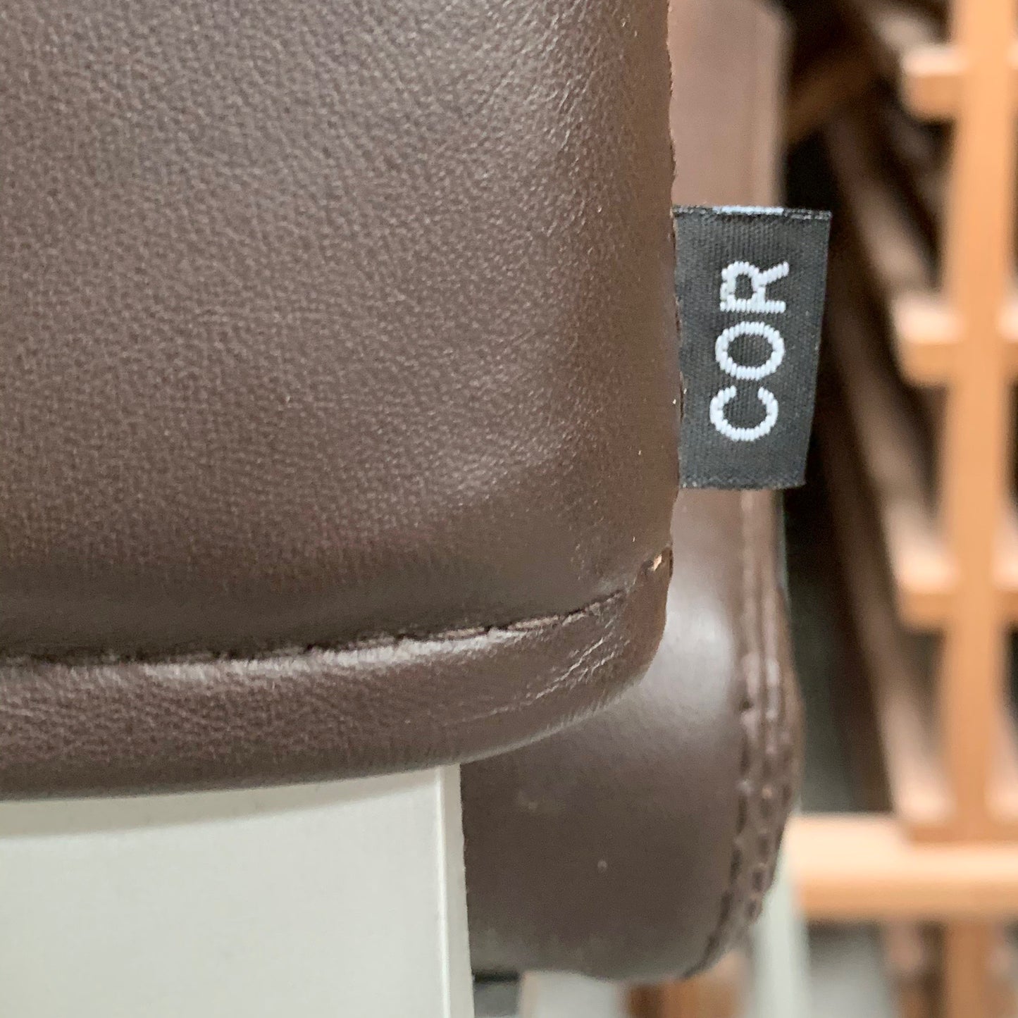The dining chairs we have on offer by COR have a bent aluminium base with brown leather upholstery.