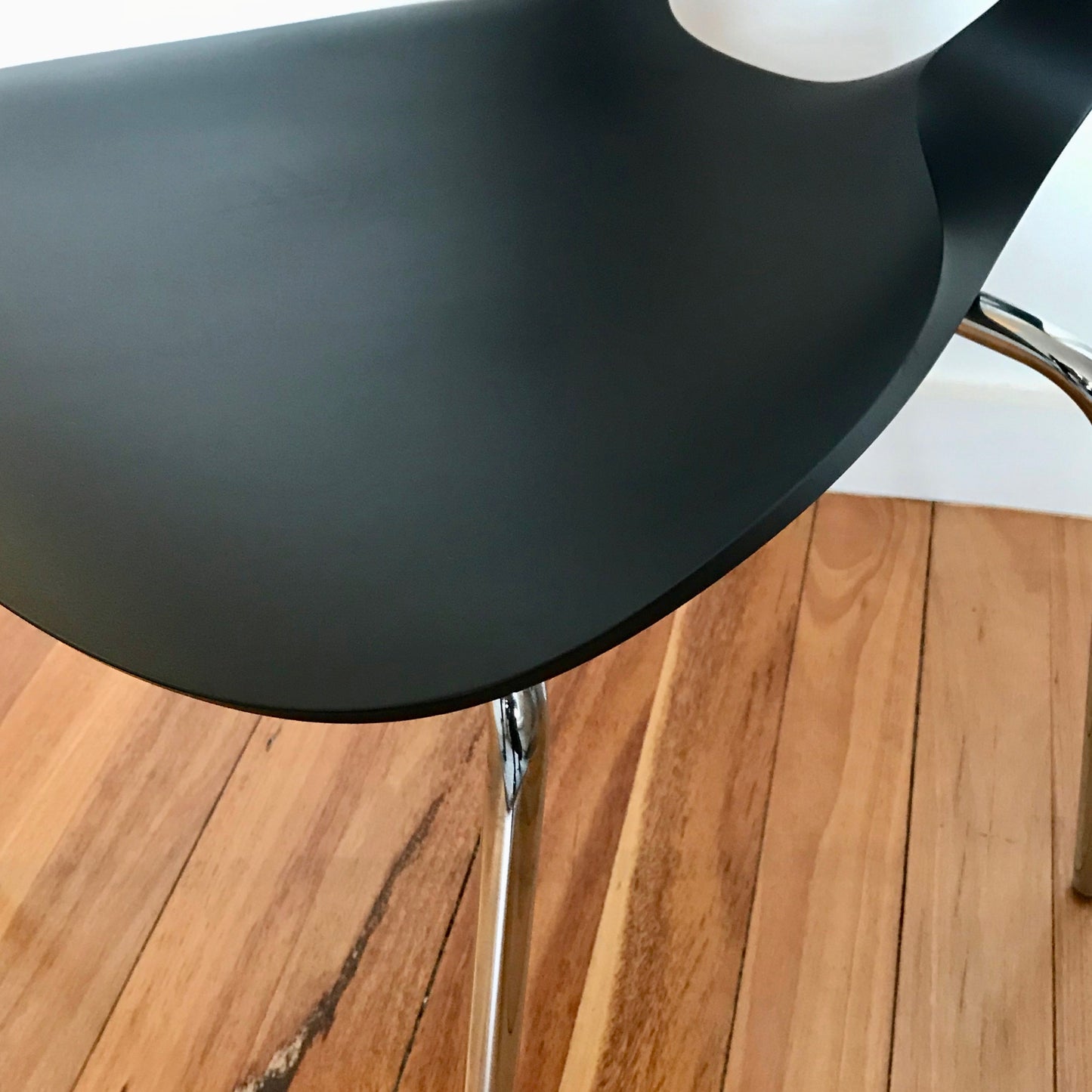 Perhaps young designer Angelo Natuzzi would never have imagined such great success for Pikaia, a chair designed in 2007, which has become a true collection of chairs for different types of area: the home, the contract furnishing sector and community areas. Certainly one of the reasons for this acclaim from critics and the public can be found in the performance of its back: with its subtle appeal and surprisingly versatile and resistant nature. Its organic shape and the technical features of the polyurethane employed in its production let it perfectly adapt to the shape and weight of the body, for an exceptional sensation of comfort. The chairs we have on offer are in black with polished metal legs.