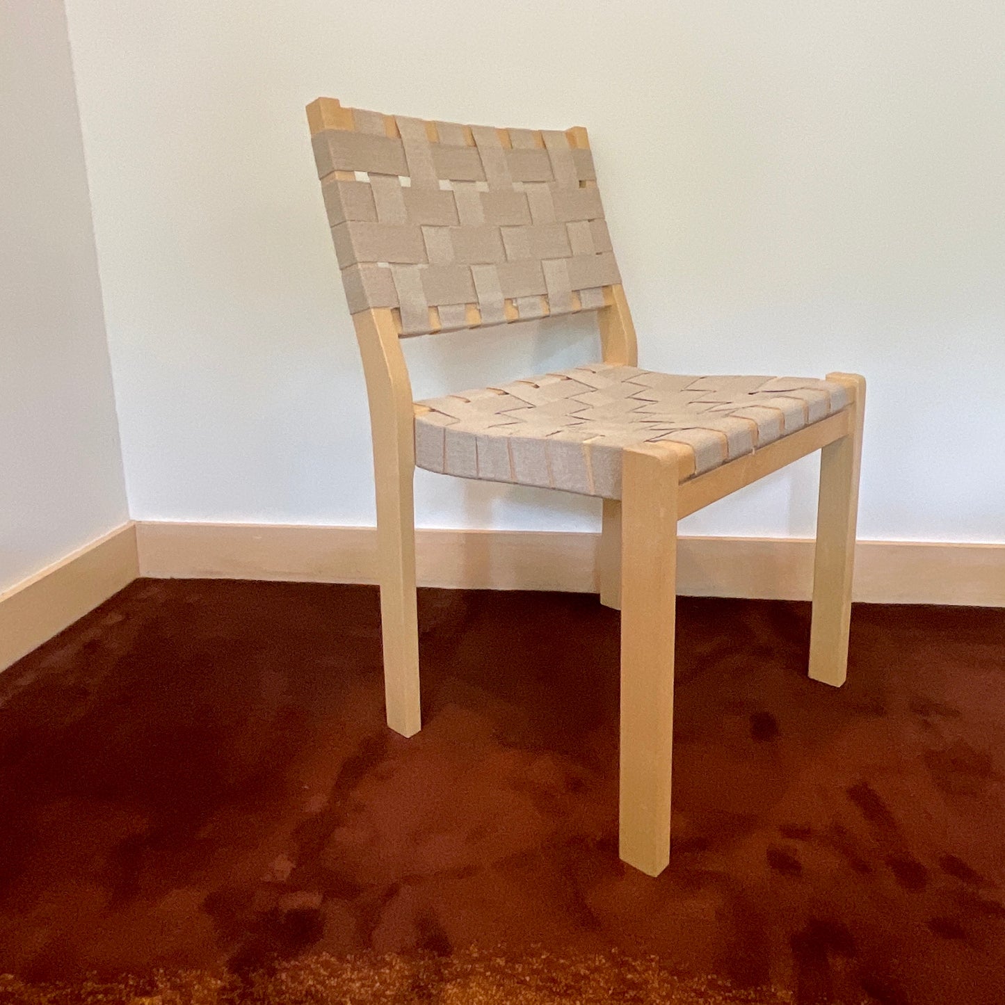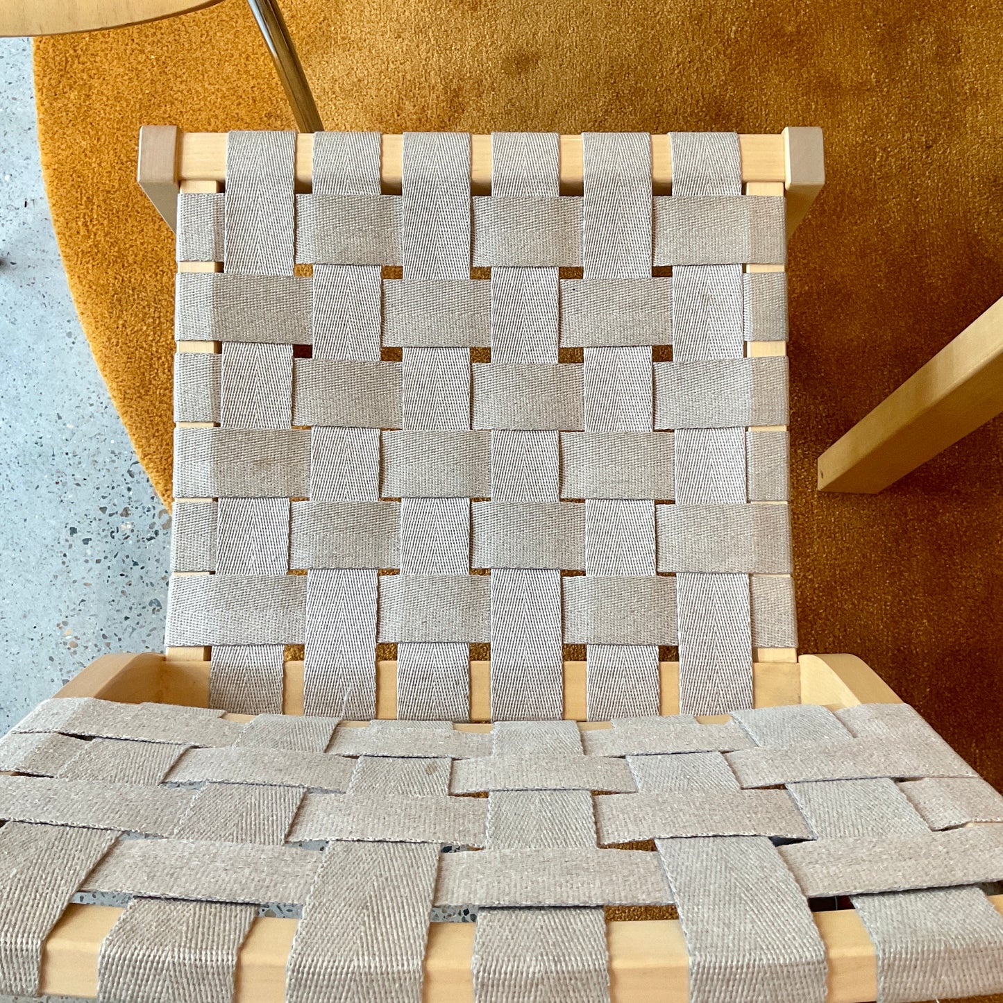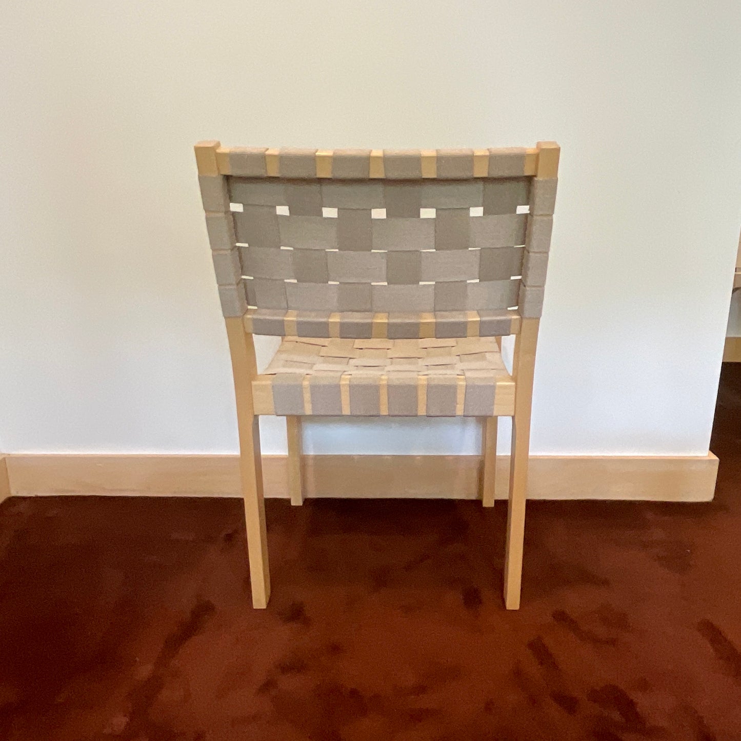 Chair 611 brings together a solid birch frame with a woven fabric seat and backrest. Designed to offer comfort and practicality, the fabric webbing yields to the sitter, making the chair exceptionally comfortable. Chair 611 can be easily reupholstered, which means the chair can have many life cycles. One of Alvar Aalto’s first modern furniture designs, Chair 611 has been in continuous production ever since its creation. Suitable for almost any environment, Chair 611 stacks up to four chairs. The chairs we have on offer are in natural.
