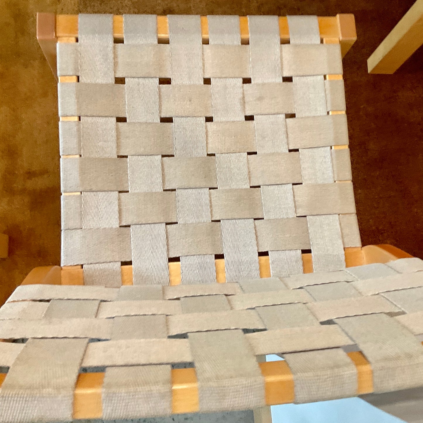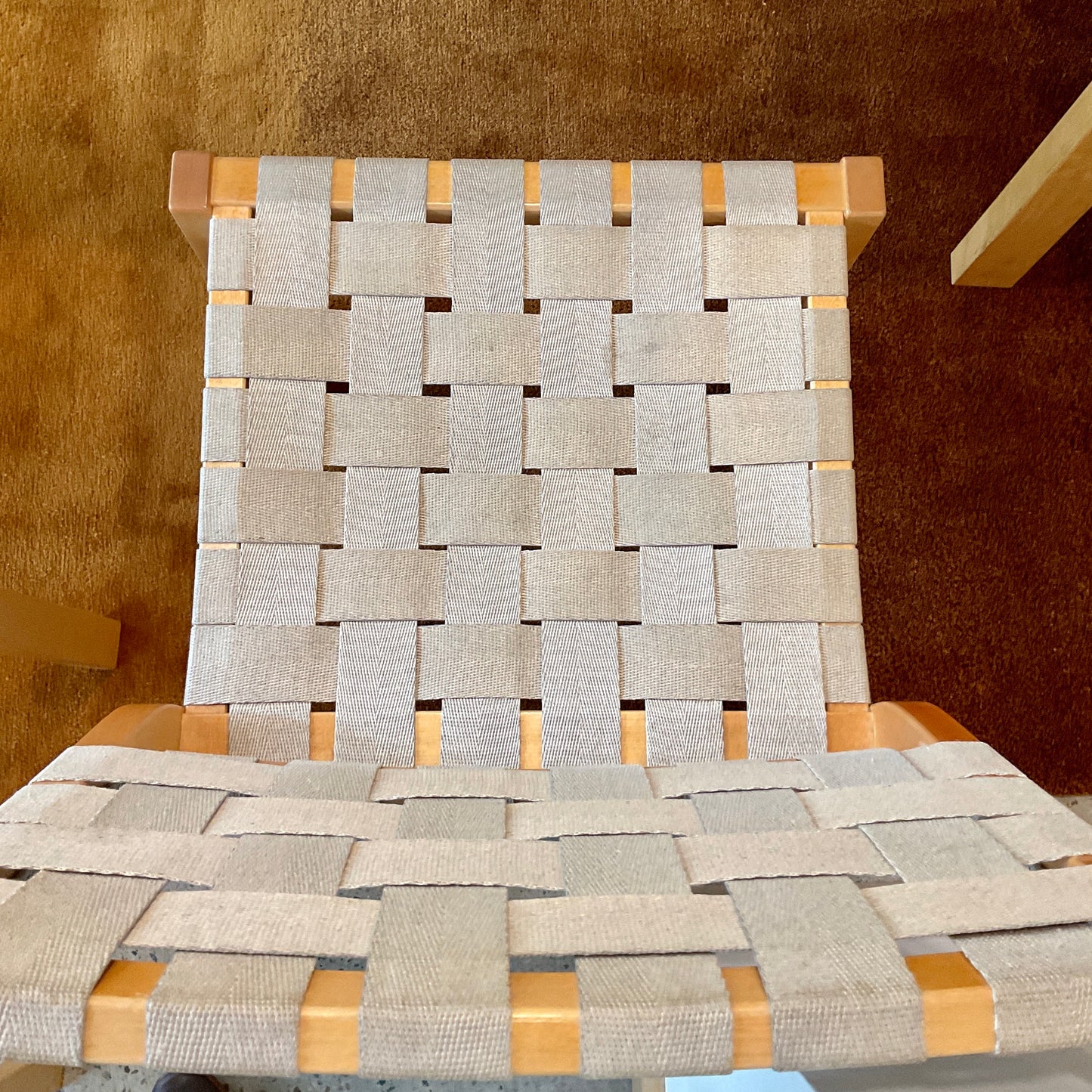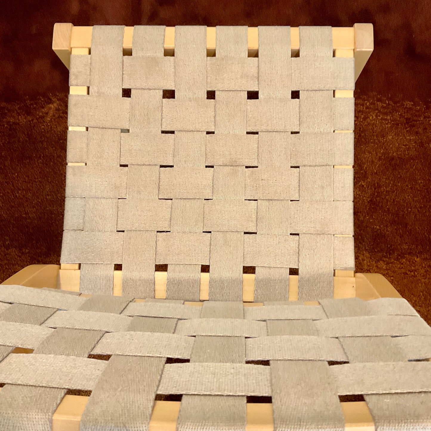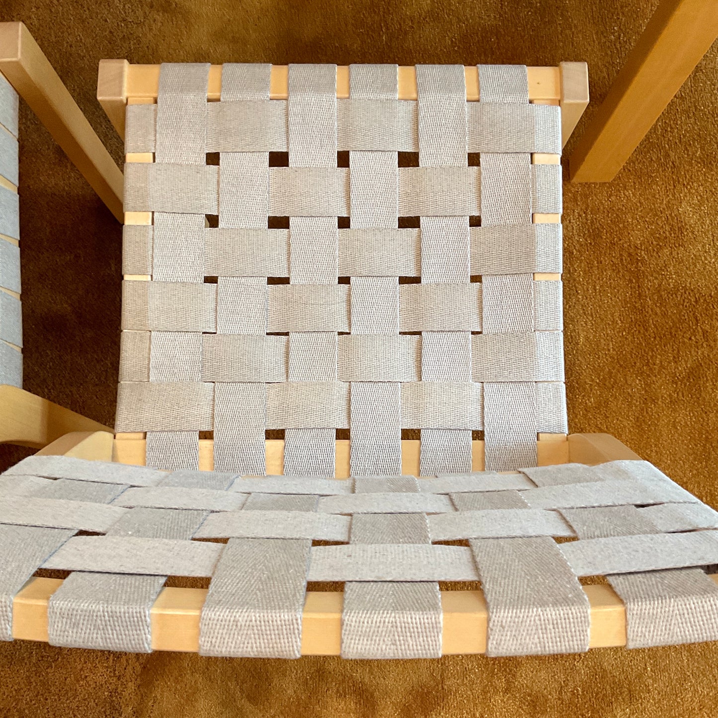 Chair 611 brings together a solid birch frame with a woven fabric seat and backrest. Designed to offer comfort and practicality, the fabric webbing yields to the sitter, making the chair exceptionally comfortable. Chair 611 can be easily reupholstered, which means the chair can have many life cycles. One of Alvar Aalto’s first modern furniture designs, Chair 611 has been in continuous production ever since its creation. Suitable for almost any environment, Chair 611 stacks up to four chairs. The chairs we have on offer are in natural.