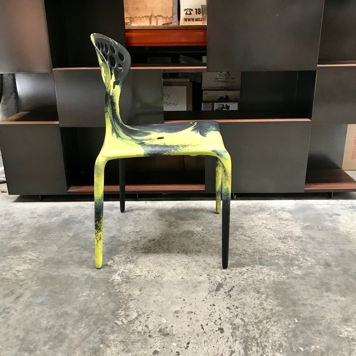 The Supernatural perforated back chair is now available in a bi-colour swirl combination. Random patterns are created from caramel/turquoise, black/orange, black/fluro green or white/fluro green. Ideal for restaurants, cafes, cafeterias. Perfect for gardens, patios, terraces. The gently curved backrest and the generous seat flex gently for comfort.