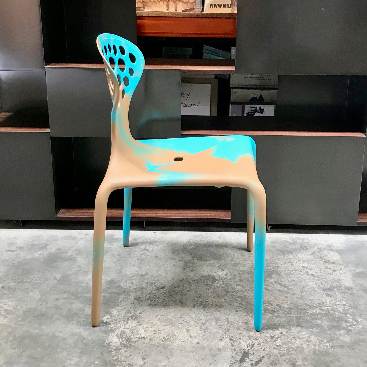 The Supernatural chair is colourful, stackable up to 8 chairs and, thanks to the special material used, is fade resistant and suited for the outdoors. Offered in your choice of four swirl colours.