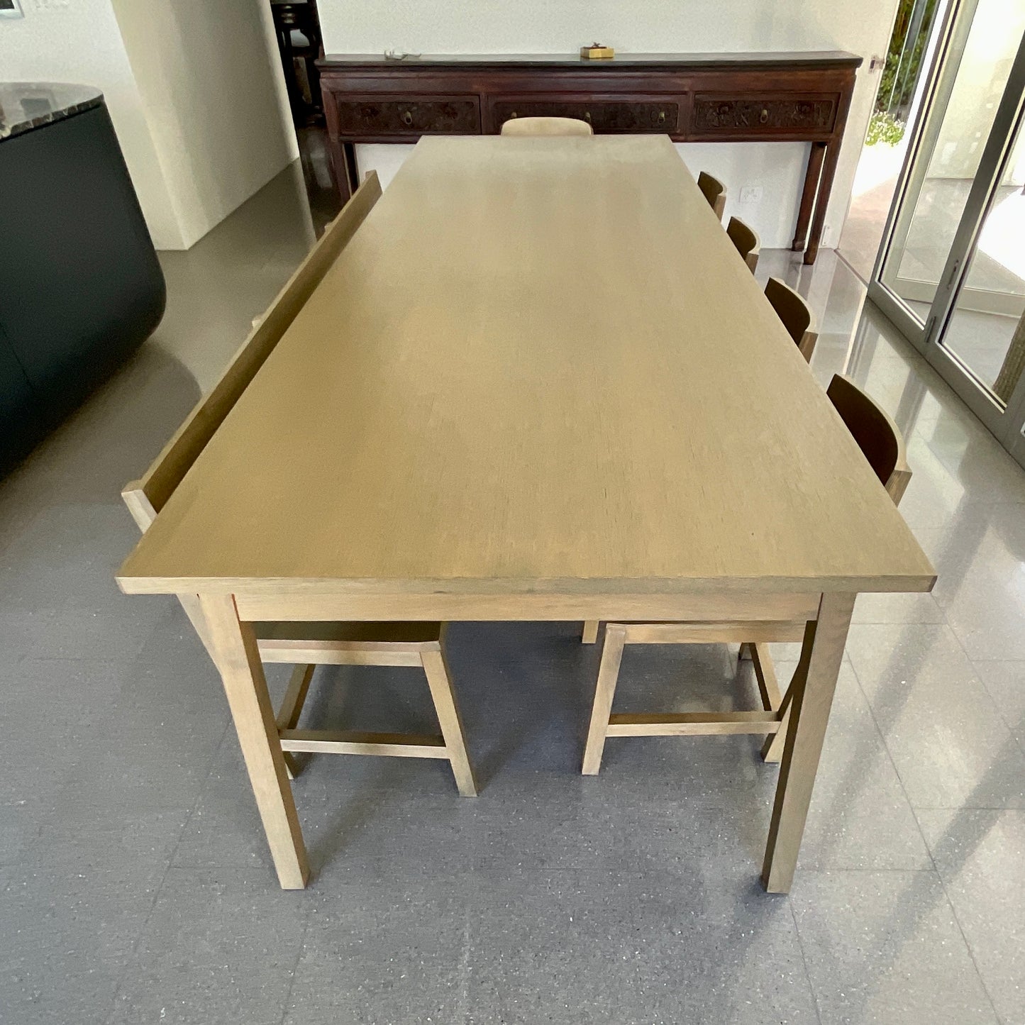 Celebrating the innovations derived directly from the Shaker communities, ‘Atelier Van Lieshout’ have created the perfect partner for the cheeks. Encompassing all the qualities of the traditional craftsmanship yet captivating a totally contemporary aesthetic. The simplicity of this sets lends itself to a modern farmhouse or beach house. The set we have on offer is a stained oak.