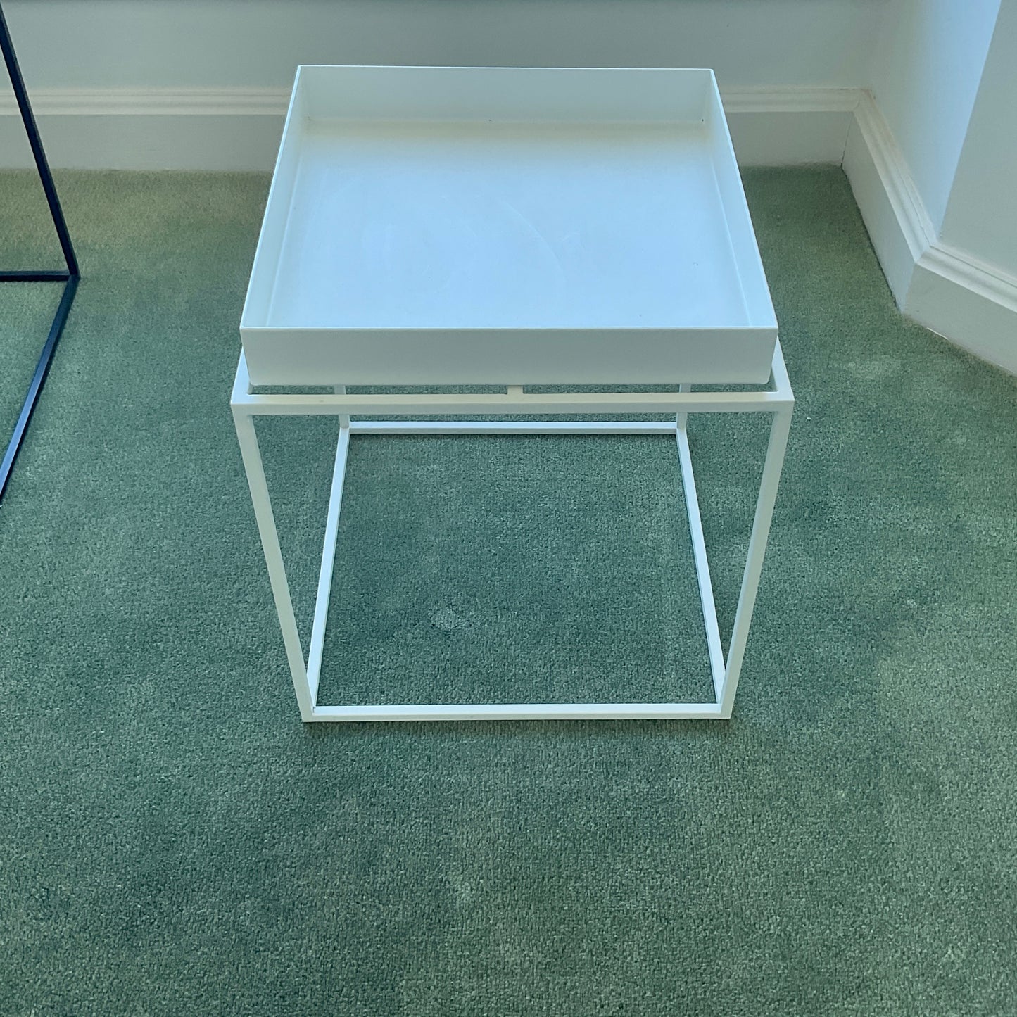 The metal Tray Table is a multi-functional piece of furniture that can easily be adapted to fit your needs. When the tray top is in place, it can be used as a bedside table or coffee table, and when the tray top is removed, it becomes a regular tray that can be used to carry things. The table we have on offer is in white.
