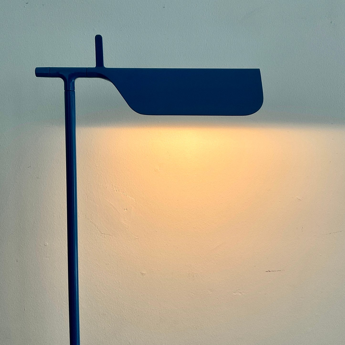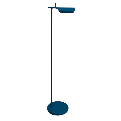 The Tab Floor Lamp comprises of an adjustable pressofused aluminium head, and aluminium stem and base finished in a special edition electric blue. The reflector can be adjusted +/- 45. A PMMA lighting diffuser avoids multi-shadowing from the integrated GP lamp. An on/off switch is located on the power cable.
