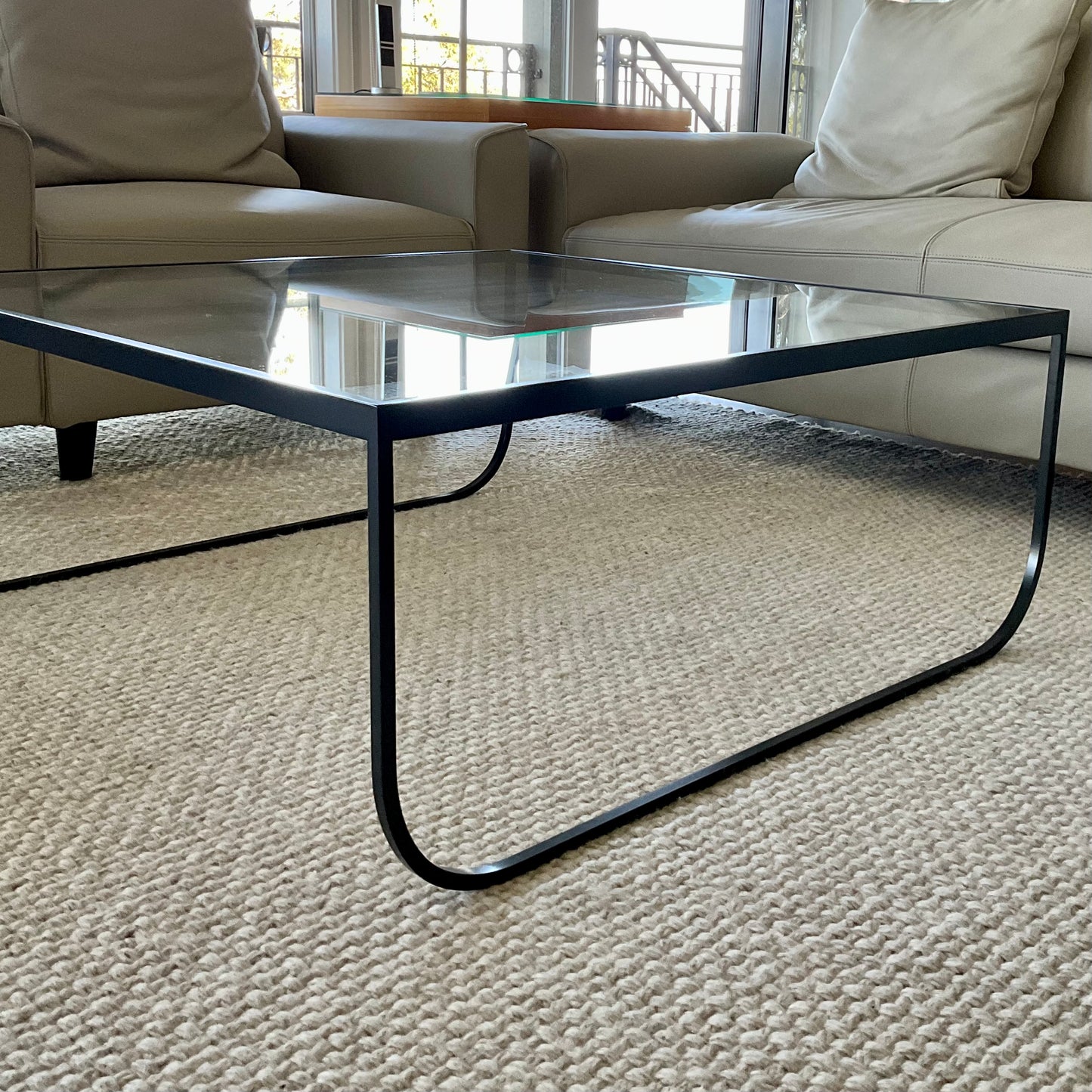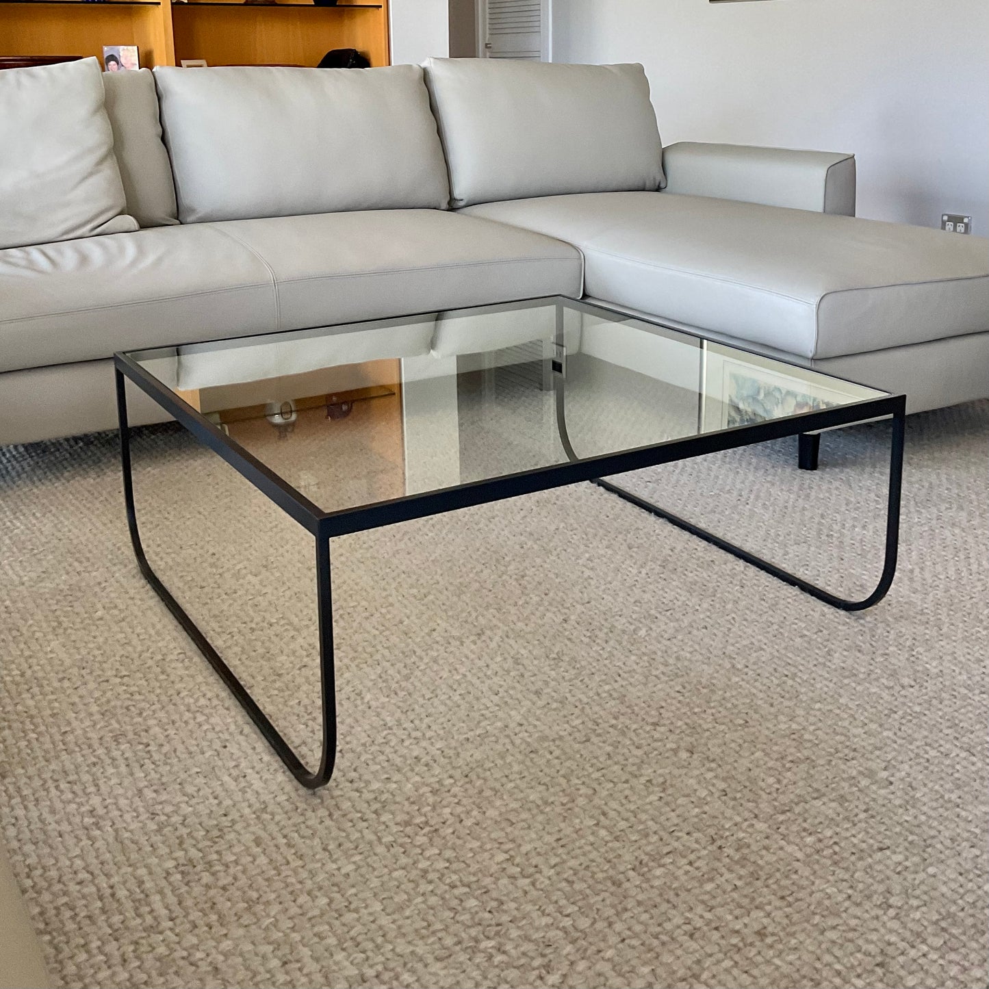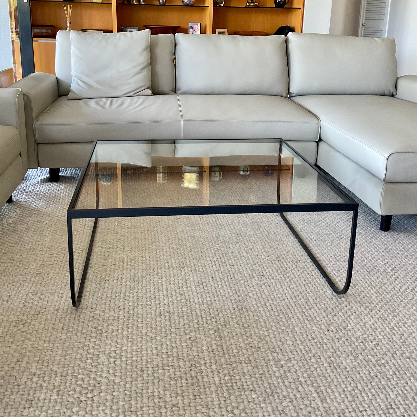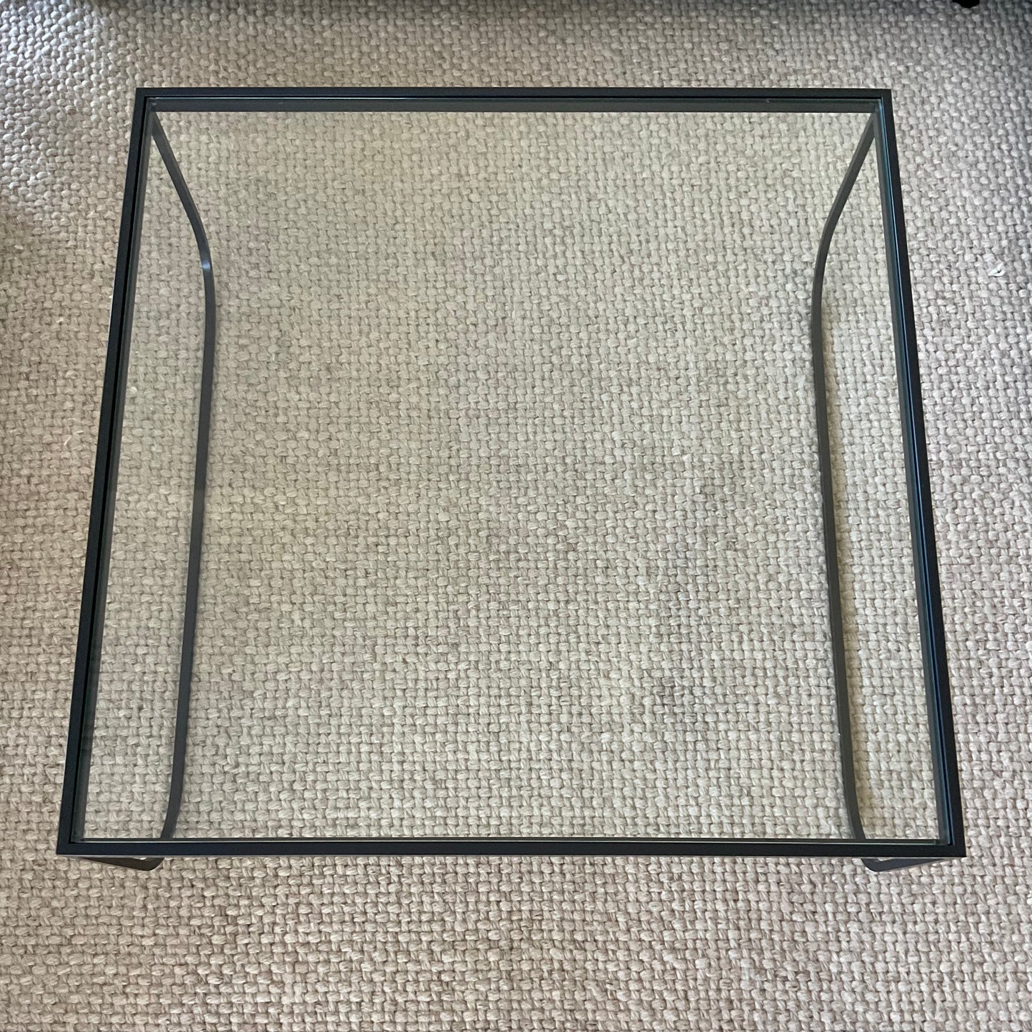 Tati Sofa Table is available in two sizes, which slide together beautifully. They are available as a set or as separates, but sold in individually. The frame is made of lacquered metal and the tabletop is in transparent (high), lacquered glass.
