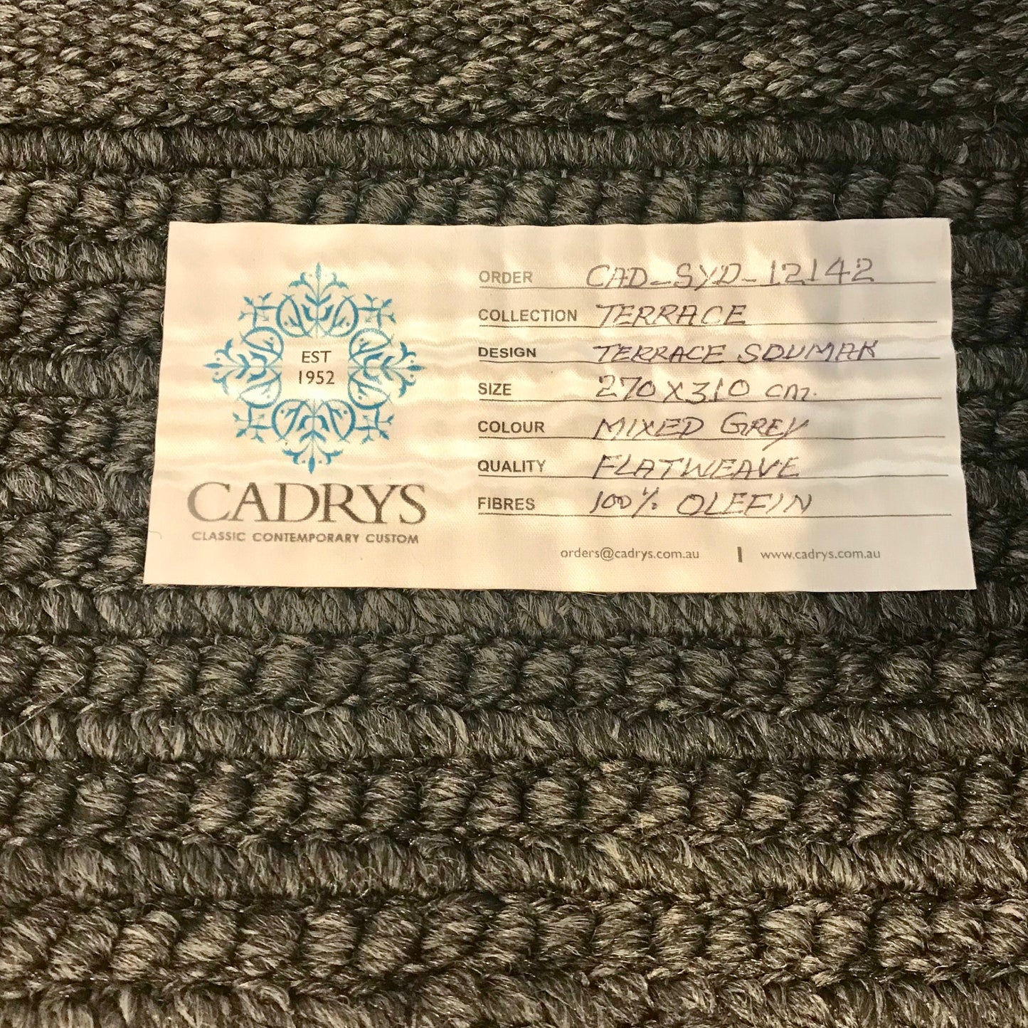 The Terrace are rug by Cadry's is sutable for both indoor / outdoor use. The rug is made from olefin. The rug we have on offer is in mixed grey.