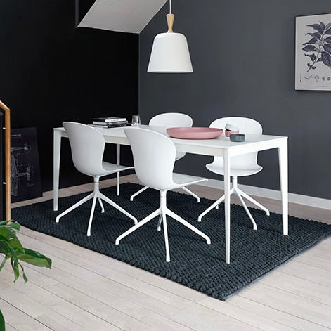 The Torino dining table is the ultimate piece of minimalist furniture and fits right into the Scandinavian style. The monochrome look and clean lines create an elegant frame while the narrow table top is a perfect fit for small homes.