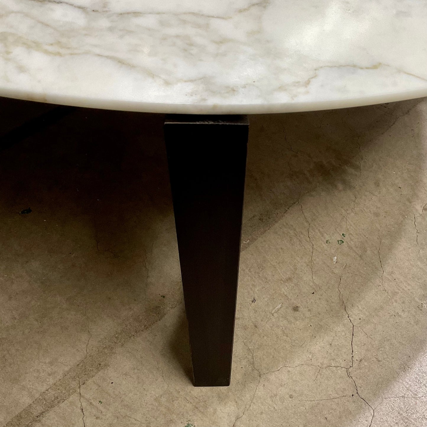 This familyof tables asserts a taste for beauty and simplicity of form. The solid wood structure and the four elegantly tapered legs form an X-shaped design at the base of the table. The table top, with beveled edge, can be crafted in the same wood as the base or in luxurious marble. The Tris tables can confidently be paired with any seating elements. The table we have on offer is a stained Ash base with marble top.